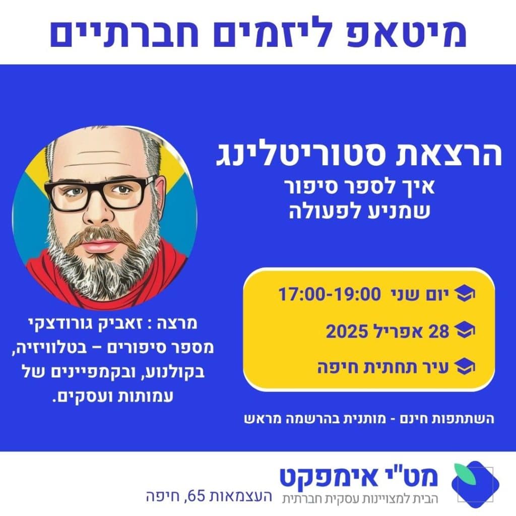 סטוריטלינג הוא לא רק באז-וורד – הוא כלי רב עוצמה לרתום אנשים למטרה שלכם, לגרום להם לפעול, ולהביא תוצאות.